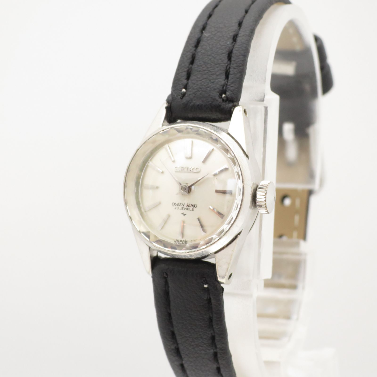 稼働品 クィーン セイコー レディース腕時計 1020-0010 シルバー 23石 手巻き 社外バンド ヴィンテージ レトロ 廃盤 上品 エレガント フェミニン 小ぶり 華奢 第二精工舎製 亀戸