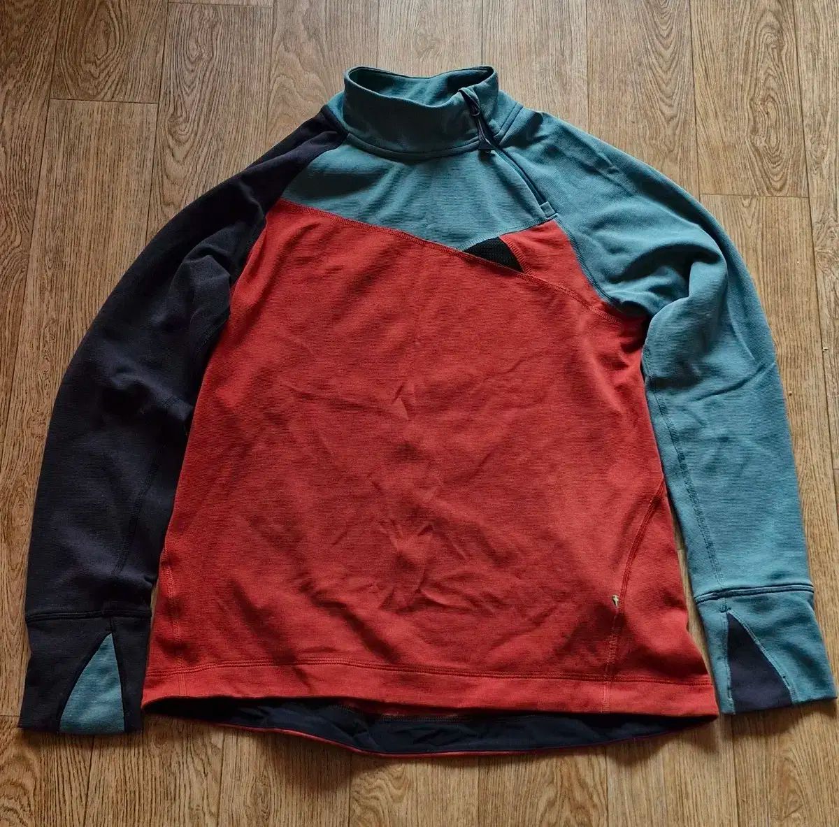 これはClatermusenのNyornクルージップアップが付いた女性用ハイキングスーツです。サイズ66、サイズ95、Mサイズというユニークなカラーコンビネーションが際立つ商品で、ネックラインにはジッパーのディテールがあり、着やすいです。春と秋には単独で着用し、冬用ミドルウェアとして使用してください。少し使用感がある以外は汚れやダメージはありません
