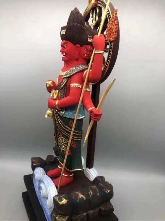 彩 最 品 総檜木材 仏教 木彫仏像 仏師手仕上げ品 三宝荒神立像