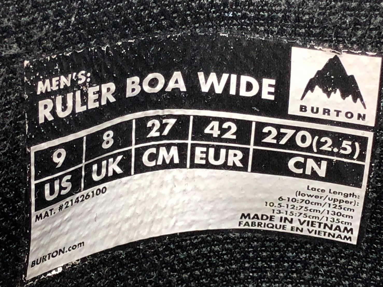 BURTON RULER BOA WIDE メンズ 27 cm スノーボードブーツ バートン ルーラー ボア ワイド 18702