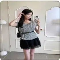 ミッドナイトショールーム ディオールハウンドチェックジャケット ミニカンカンスカート