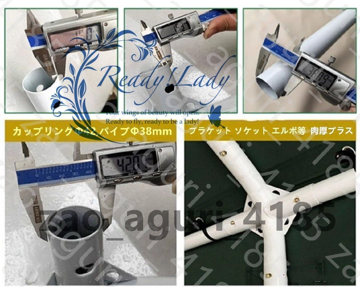 アーチ本数:4本 直径Φ38mm 幕:天幕+前後幕+横幕 全囲いタイプ(緑色) (巻き上げ式)